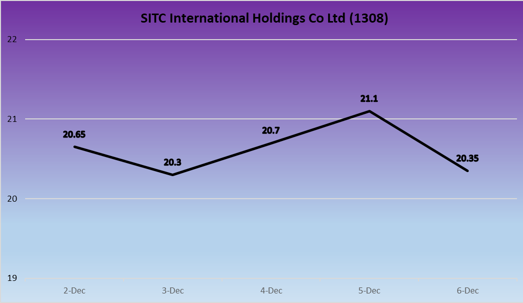SITC saw a volatile week, opening at HK$20.65 and closing at HK$20.35, a decline of 1.45%. After recovering midweek to HK$21.1, the stock fell back, reflecting ongoing challenges in regional trade routes and muted demand across intra-Asia markets. Investor sentiment remains cautious as the company navigates weaker freight rates in its core operating areas.