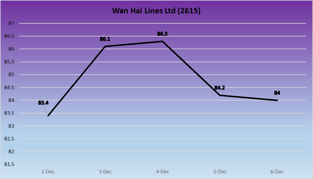 Wan Hai showed some resilience during the week, climbing to NT$86.3 midweek before retreating to close at NT$84. This 0.24% decline underscores investor hesitancy amid softening demand and pressure from overcapacity in certain trade lanes. Despite temporary gains, Wan Hai continues to face significant headwinds.