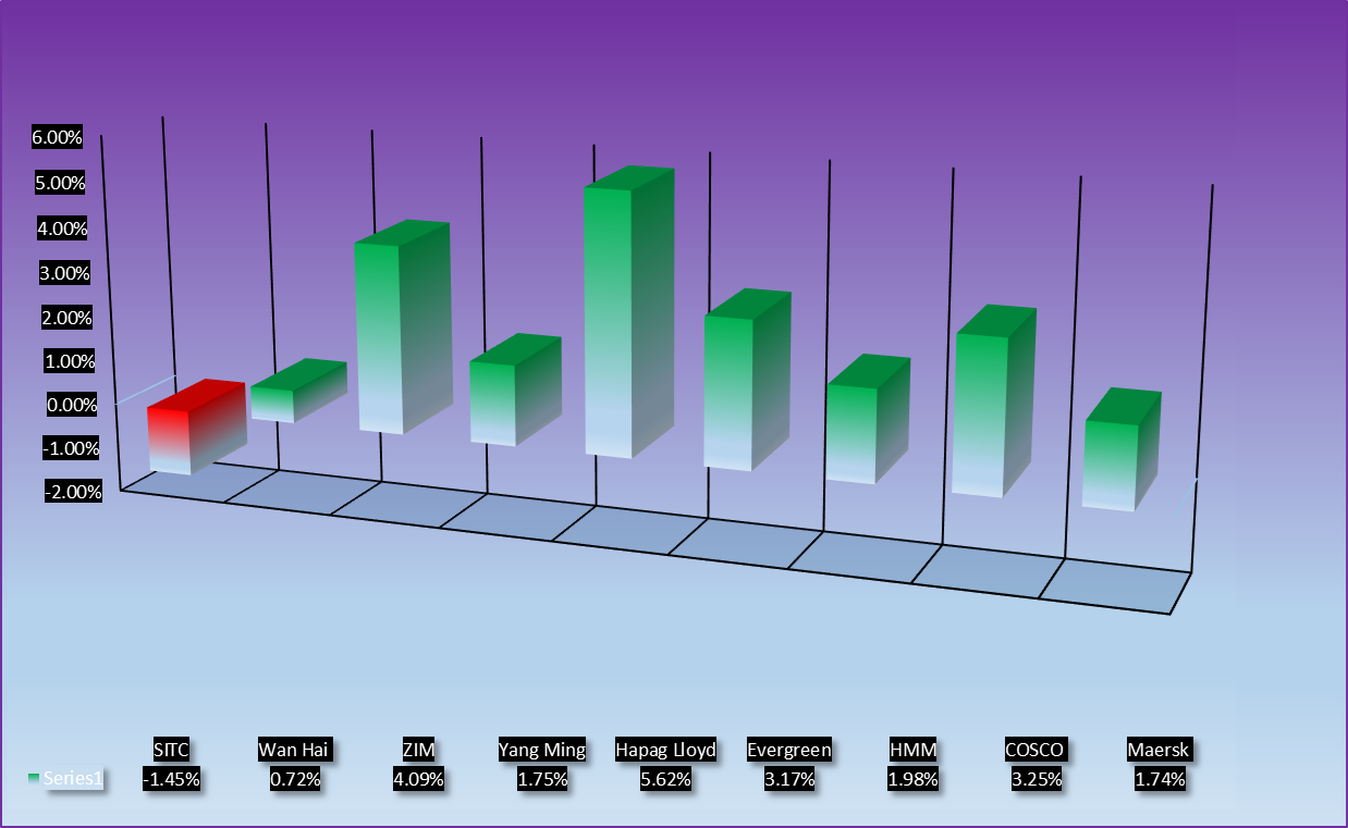 In contrast, SITC and HMM faced slight declines, reflecting ongoing regional and operational challenges. Wan Hai’s midweek gains were overshadowed by a late-week retreat, and Yang Ming posted modest growth, signaling stable investor sentiment. COSCO saw steady gains, but its outlook remains tied to broader uncertainties in Chinese trade.