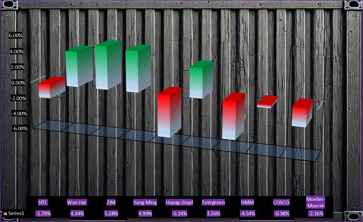 The past week saw mixed performance across major container shipping companies, reflecting diverse market conditions, investor sentiments, and regional economic influences. Many companies experienced notable volatility, likely driven by fluctuating demand expectations, cost pressures, or recent financial disclosures.