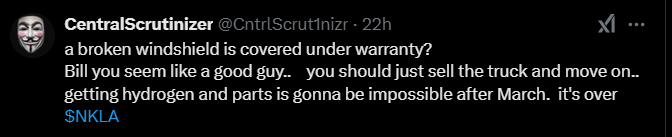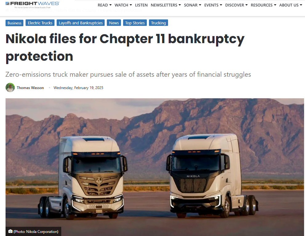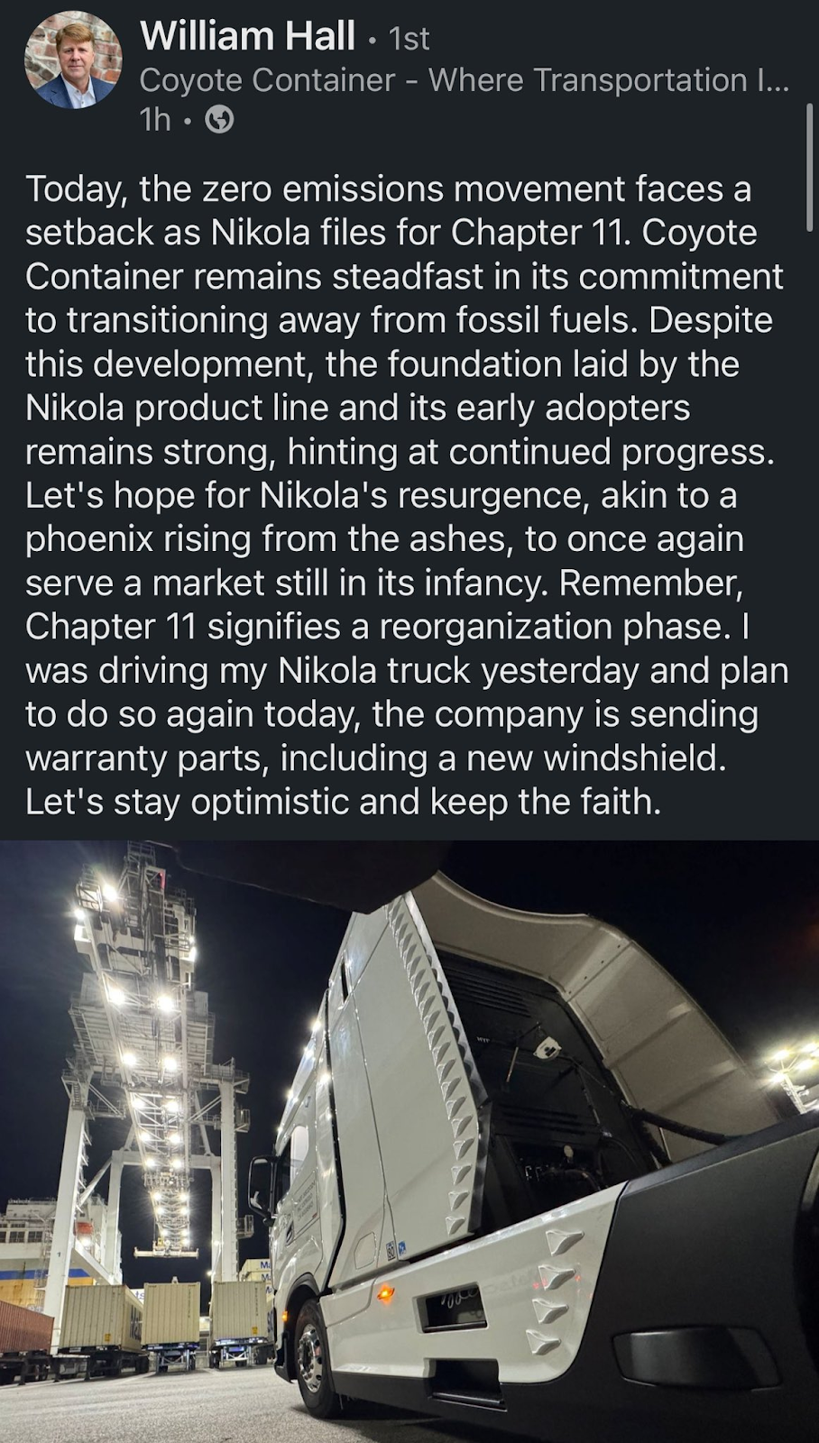 I’m not sure what pathway current Nikola owners will have to keep their trucks serviced and if there is even a market to sell them into without taking a massive bath. It’s a tough situation for fleets that listened to government regulations that were forced upon them.