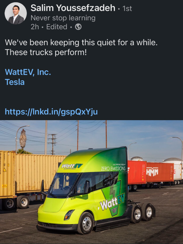WattEV did finally get one Tesla Semi, so there’s that. Sound off. What do you think: Are you planning on investing in EVs, or are you sticking this one out as long as you can? Email me here.