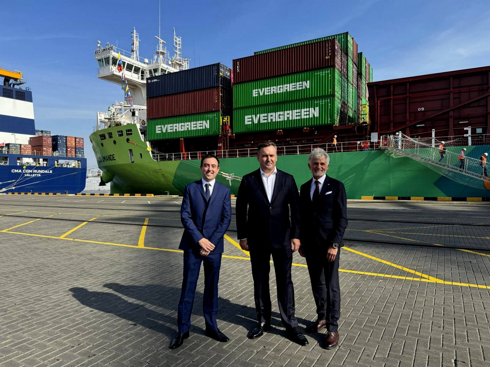 “We are pleased that this year, large cargo ships powered by LNG are increasingly arriving at our terminal, LNG bunkering operations have already been carried out, and today we are welcoming the green methanol-powered vessel Eco Umande. All of this proves that as a cargo terminal, we are responsibly prepared to serve not only regular vessels but also environmentally friendly vessels that actively contribute to environmental preservation,” commented Vaidotas Šileika, CEO of Klaipėda Container Terminal.